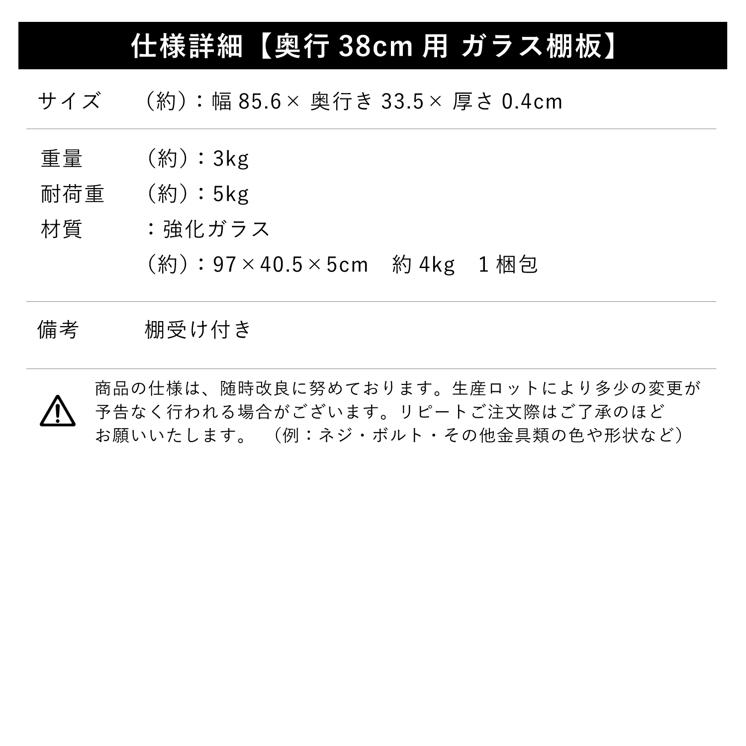 [オプション] 引き戸ガラスコレクションケース【SLALIS】奥行き38cm用 追加ガラス棚板 単品