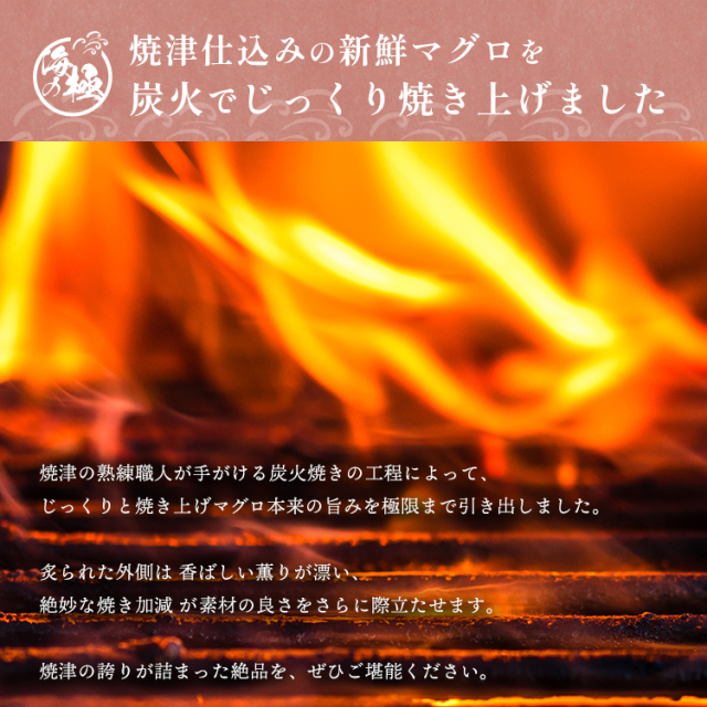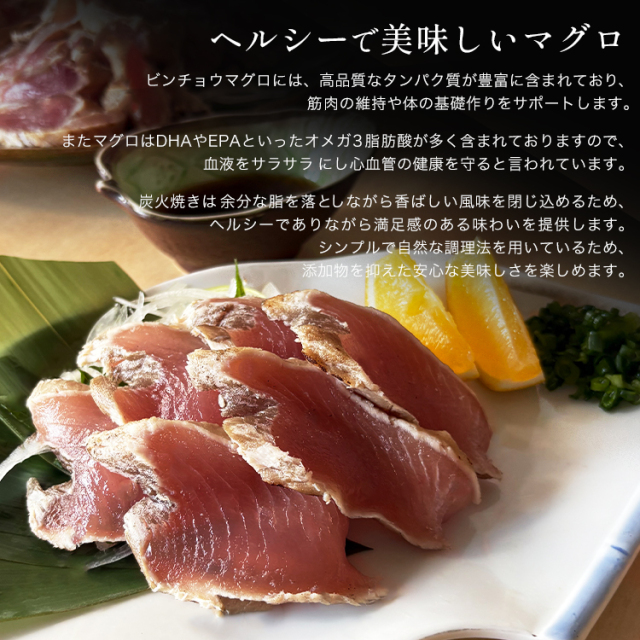 ヘルシー、ビタミンたっぷり鮮度が抜群。 アンチエイジングなど様々な美容成分が豊富に含まれているビンチョウマグロを炭火で焼きました。 【炭火焼き】とはブロックを炭火で一気に焼き上げる製法です。 一見シンプルな製法ですが実は炭の選び方や焼き加減の調整などそれぞれに確かな目利きとこだわりが求められる職人技の世界です。 絶品で確かな味をご家庭でお楽しみください。 贈り物にも最適です。御歳暮や御中元だけでなく、父の日や誕生日祝にも喜ばれております。別売りの専用ギフトボックスもございますので、ご利用の際は商品と一緒にカートに入れてお買い上げください。 ギフトボックスはこちらです 【贈り物用途色々】御歳暮 御中元 熨斗 御年賀 御祝 贈り物 ギフト プレゼント 静岡のお土産 卒業祝 入学祝 新生活祝 就職祝 結婚祝 母の日 父の日 こどもの日 誕生日祝 敬老の日 残暑見舞い 暑中見舞い お返し 御開店祝 記念品 贈答品 |