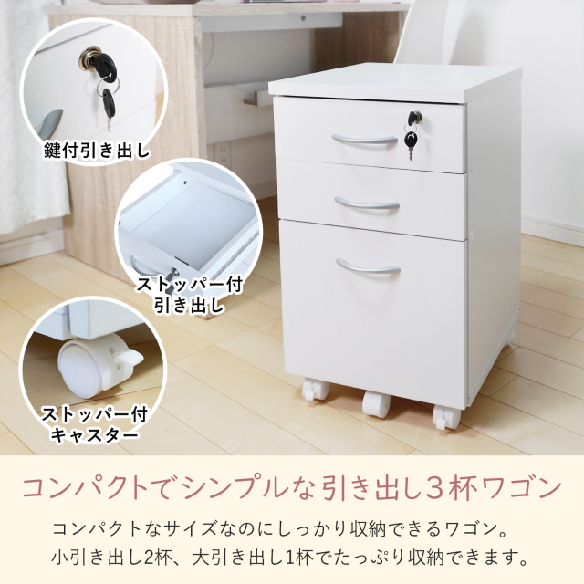 ※「デスク用ラック 幅34cm 引き出し3杯 単品」の商品ページです。