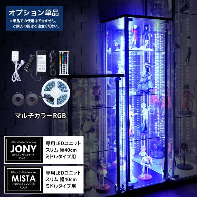 ガラスコレクションケースJONY/MISTA スリムミドルタイプ(幅40cm)専用オプション マルチカラーRGB LEDユニット