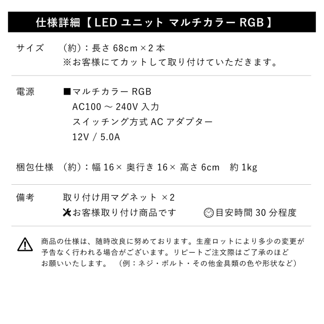 ・電源(RGBマルチカラー):AC100~240V入力、スイッチング方式ACアダプター、12V/5.0A