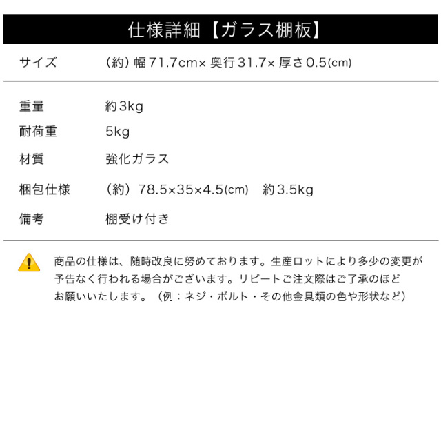 ※ライティングガラスコレクションケースGiorno ワイド(幅80cm)タイプ専用の追加ガラス棚板となります。タイプ、サイズのお間違いにご注意ください。(同シリーズ内でカラーやサイズ、オプション品等の種類が多い為)