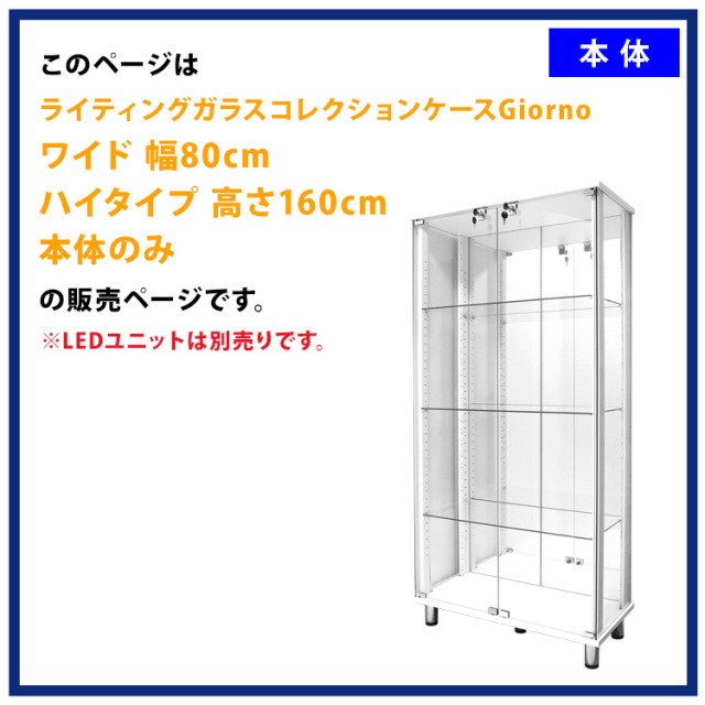 ライティングガラスコレクションケース【Giorno】ワイド幅80cm ハイタイプ 本体
