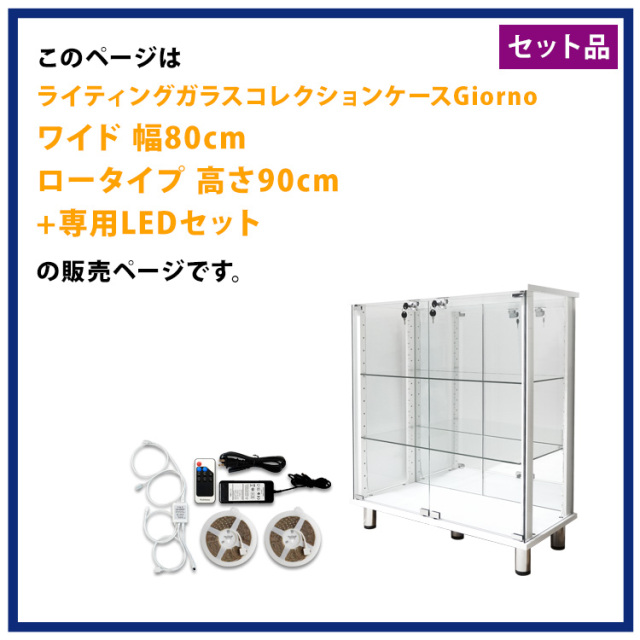 ※ライティングガラスコレクションケース【Giorno】「ワイド幅80cm ロータイプ LEDユニットセット」の商品です。