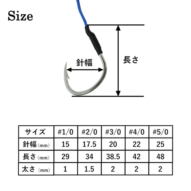 ・ジグの動きを阻害しない軽量かつ強靭なフック